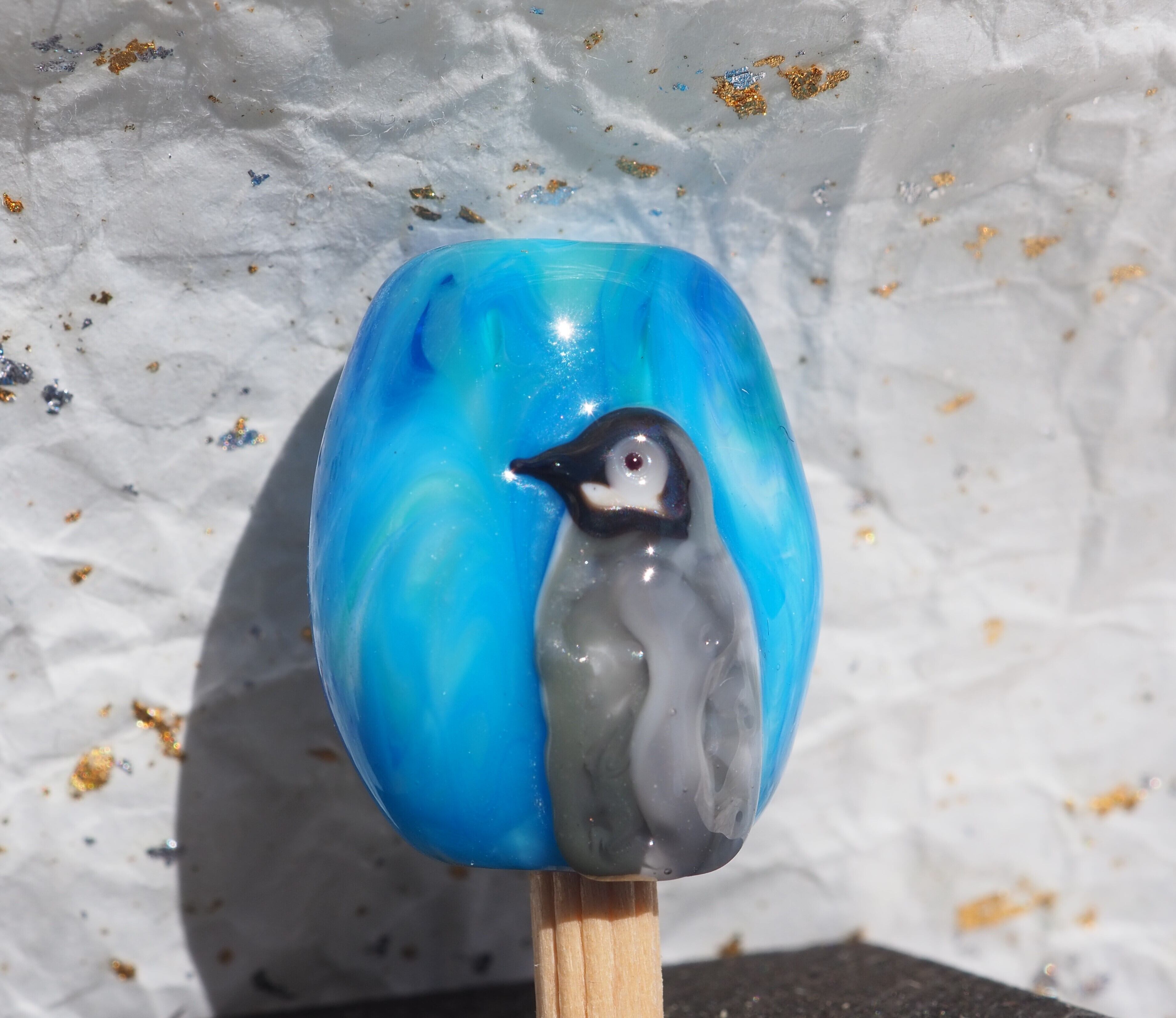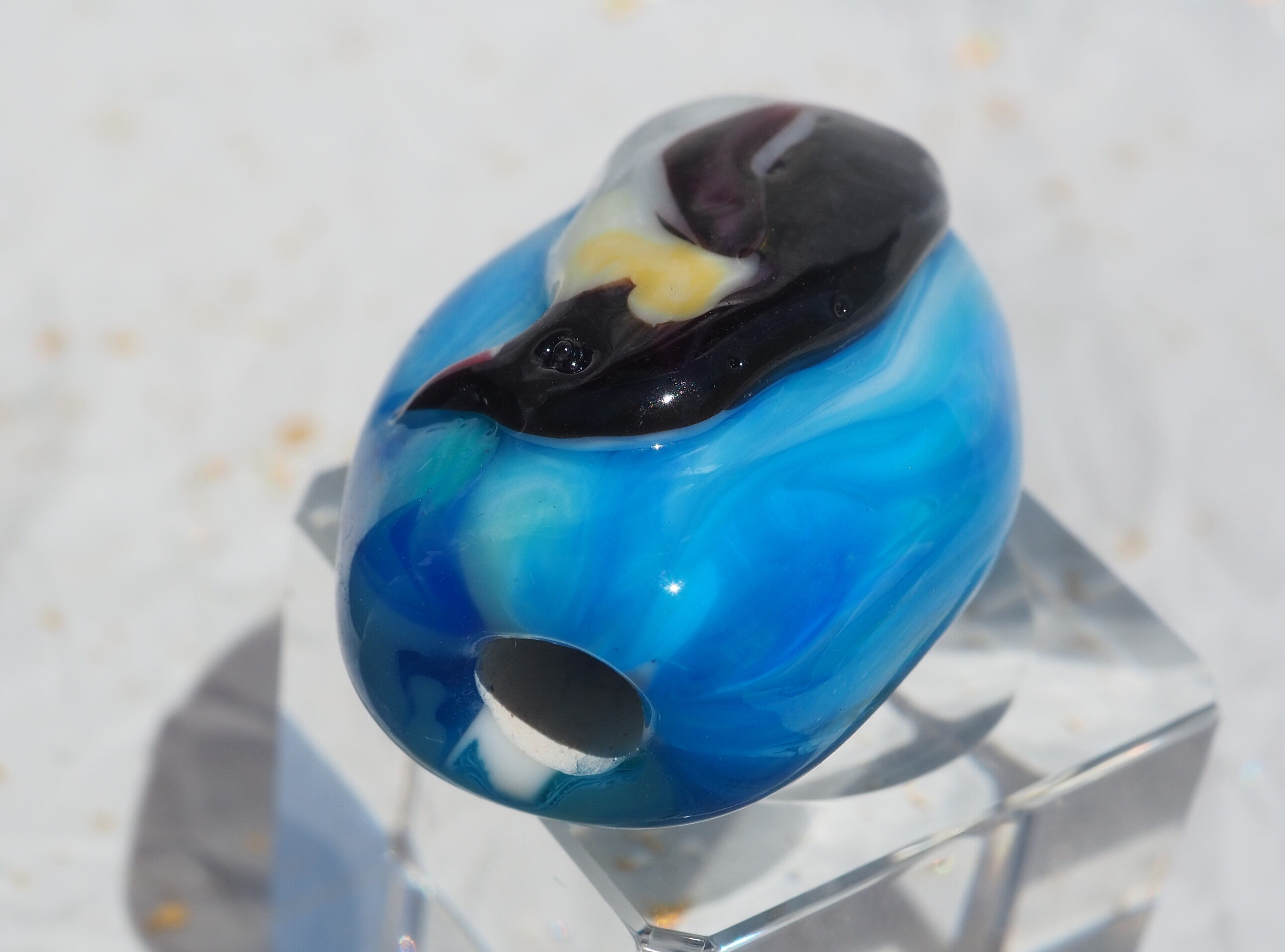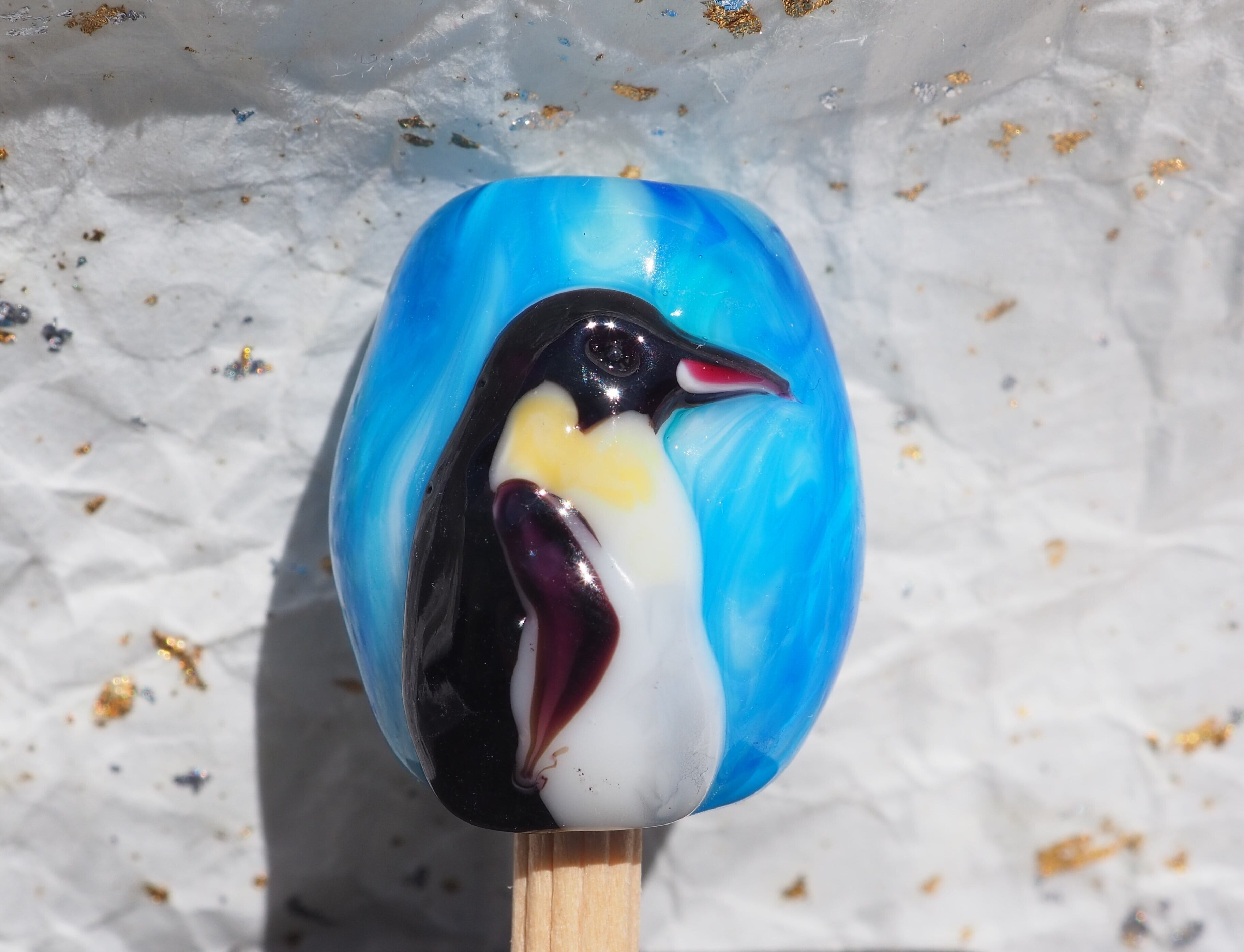 こちらはビーズの方になります。表と裏で親鳥とひながそれぞれ描かれています。 カメオグラスのようにレリーフ(半立体)で加工してあります。